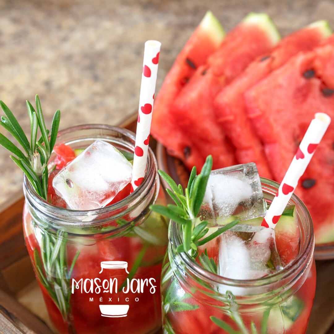 Este calorcito se baja con una infusión deliciosa de sandía con romero en tu Mason Jar favorito. 😋
