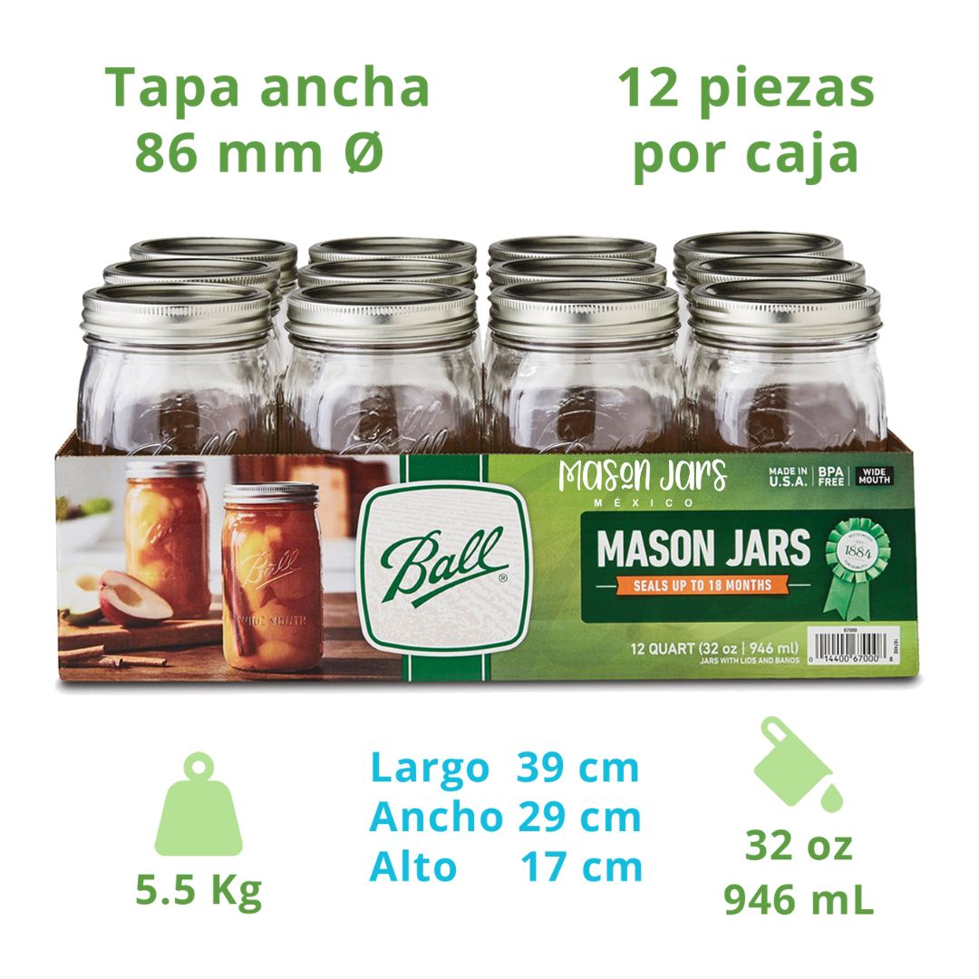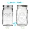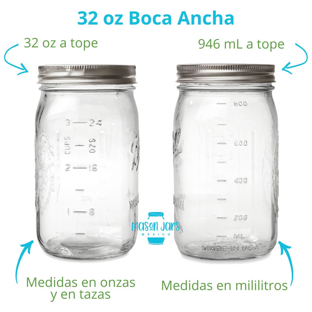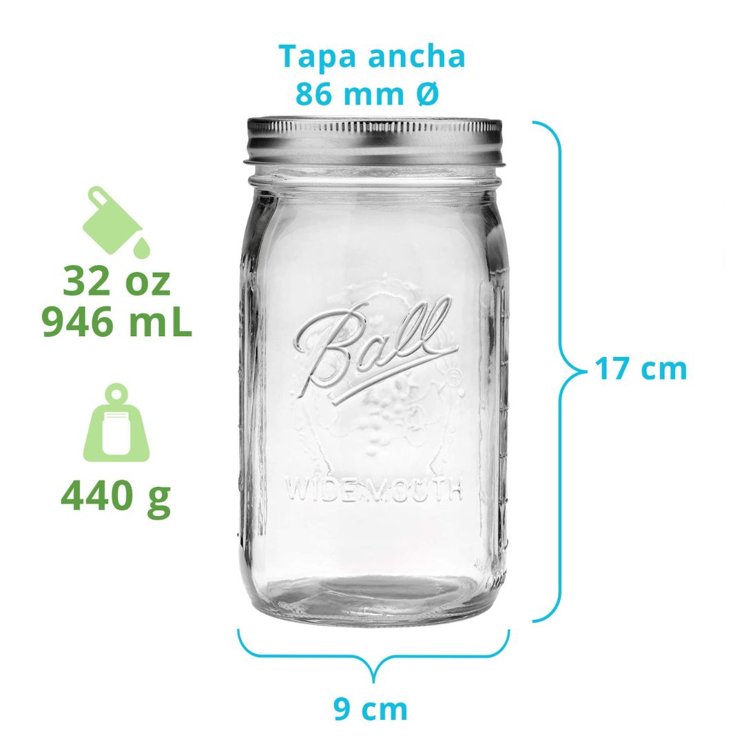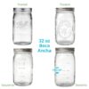 Los Mason Jars de 32 oz boca ancha son el tamaño ideal para para el almacenaje de alimentos en tu alacena y para hacer conservas de mayor volumen.