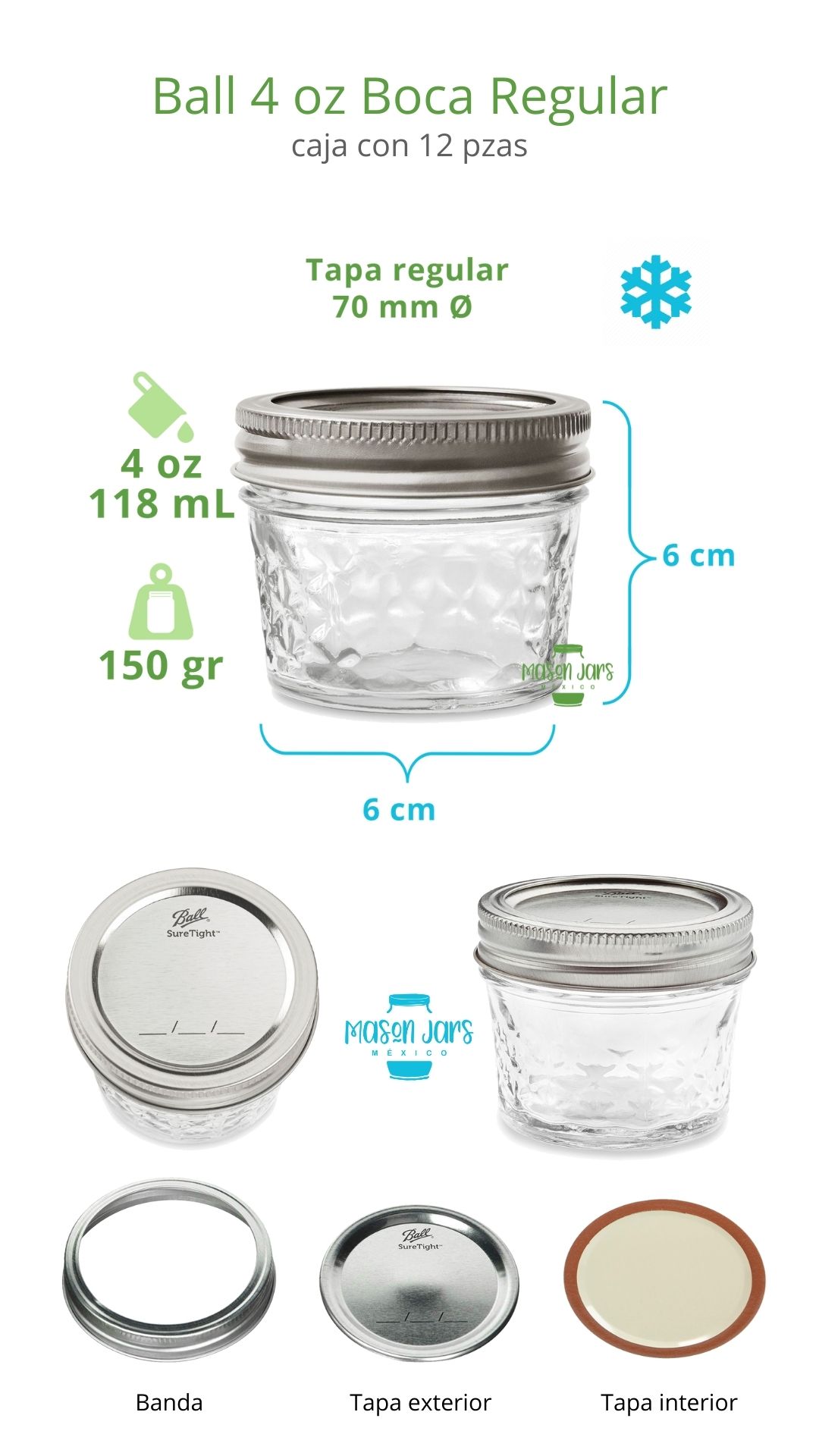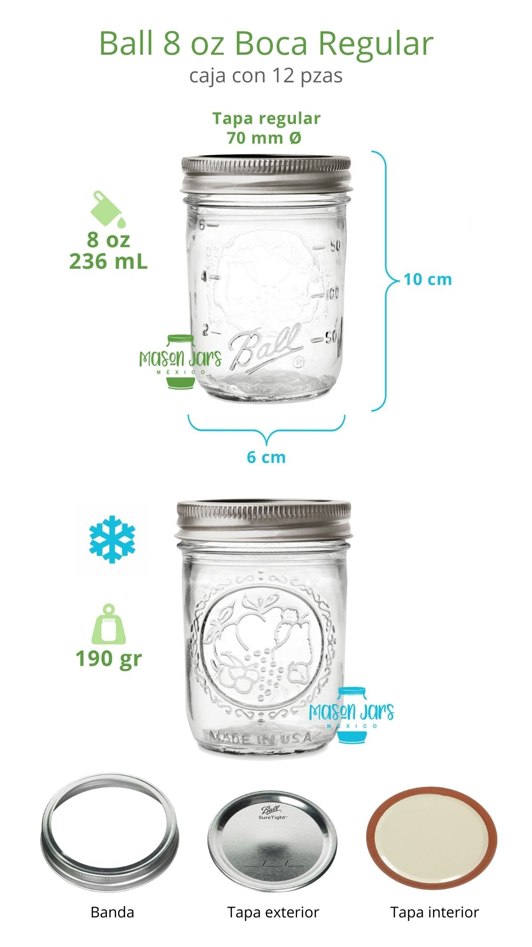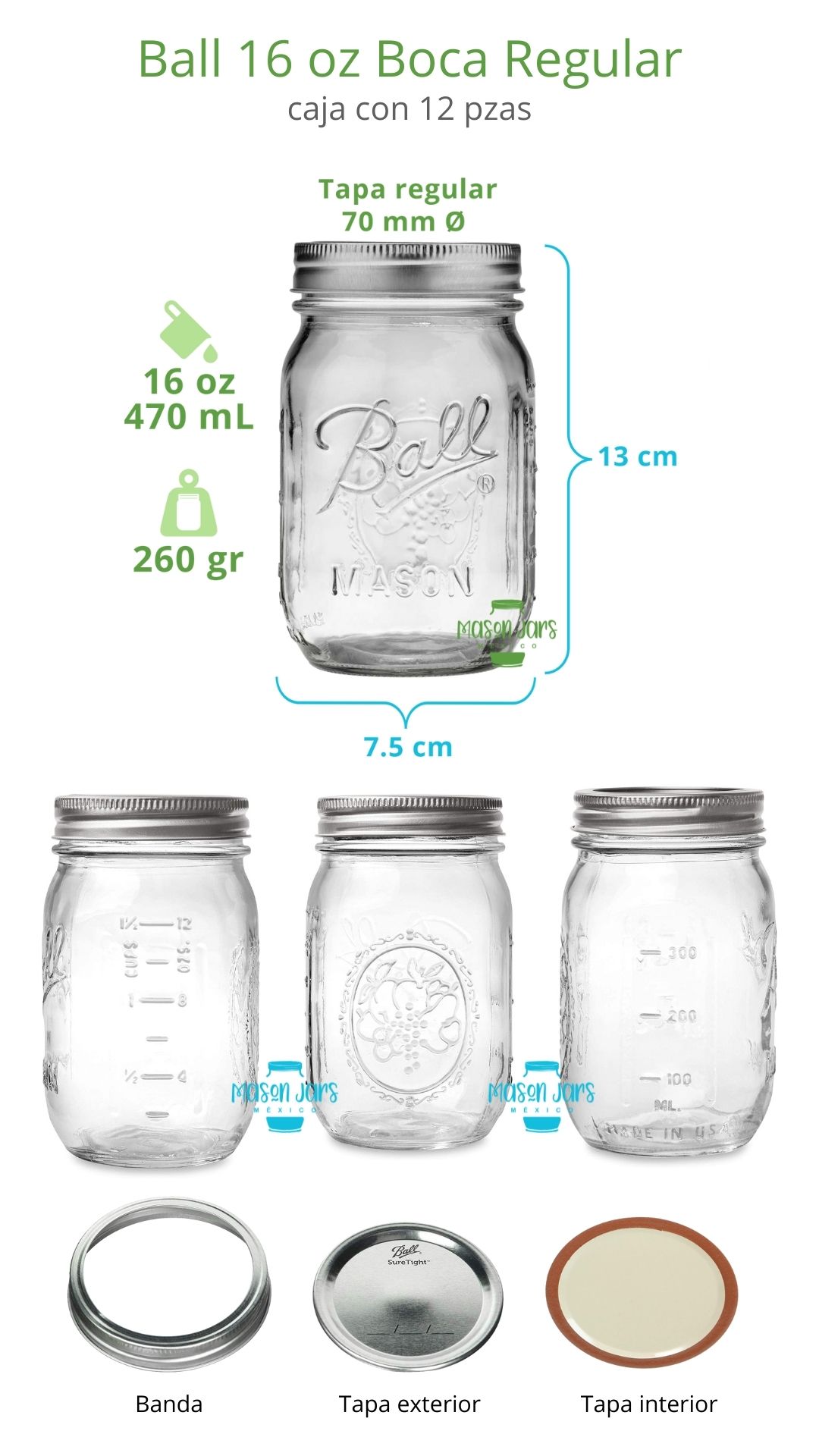 Caja con 12 piezas Boca Regular Incluye tapas con banda